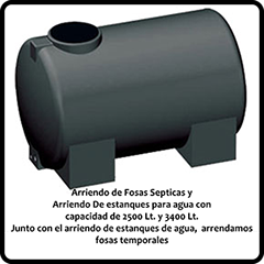 Arriendo De estanques para agua con capacidad de 2500 Lt. y 3400 Lt. Junto con el arriendo de estanques de agua, tambien arrendamos fosas temporales